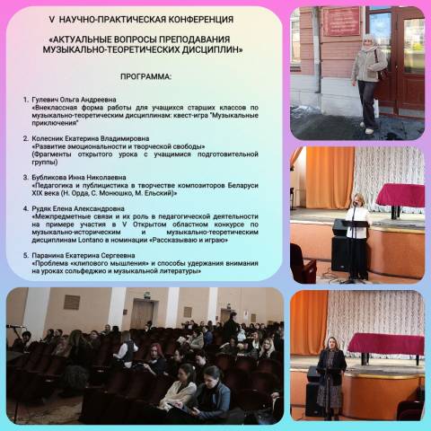 21.02.202621 февраля 2026 года в УО "Гомельский государственный колледж искусств им. Н.Ф. Соколовского" (директор Т.И. Пузыренко) состоялась V научно-практическая конференция "Актуальные вопросы преподавания музыкально-теоретических дисциплин" с участием преподавателей ЦК "Музыковедение" и учителей сольфеджио и музыкальной литературы ДШИ г. Гомеля и области. В конференции приняла участие учитель нашей школы музыкально-теоретических дисциплин Марина Вячеславовна Бердник.